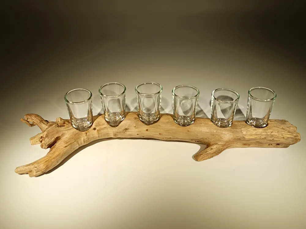 Cette pièce unique met en valeur un bois flotté clair, aux formes naturelles et aux courbes élégantes, façonné par le temps et les éléments. Six verres transparents, disposés avec précision, apportent une touche de pureté et de modernité à l’ensemble. Le contraste entre la texture brute du bois et la clarté du verre crée une harmonie subtile et raffinée. Idéal comme centre de table, porte-verres ou élément décoratif pour un intérieur au style marin, naturel ou contemporain. Chaque détail évoque la mer, le vent et la beauté des matières brutes. Cette création allie fonctionnalité et esthétisme, parfaite pour sublimer vos moments de convivialité. Une pièce qui incarne la rencontre entre authenticité et design.