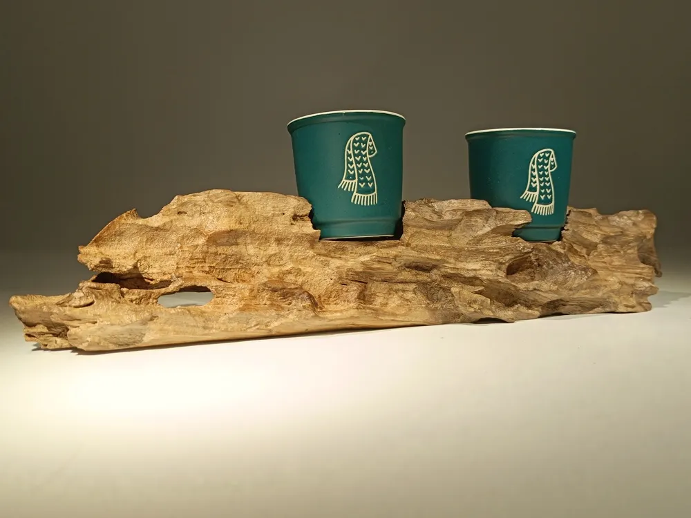 Cette création originale met en valeur un morceau de bois flotté sculpté naturellement par les courants et le temps. Sa forme allongée et ses reliefs organiques en font un support idéal pour accueillir des tasses à café. Chaque courbe raconte l’histoire de la nature, figée dans une matière douce au toucher et patinée par l’eau. L’ensemble crée une atmosphère chaleureuse et authentique, entre art brut et design épuré. Que ce soit sur une table, une console ou un plan de travail, cette pièce attire le regard et invite à la convivialité. Une alliance subtile entre utilité, esthétique et poésie naturelle.