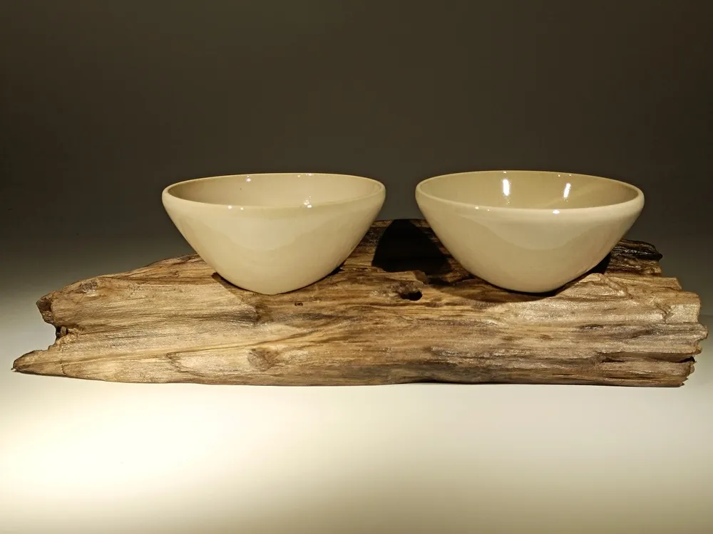 Cette œuvre minimaliste associe la force brute du bois flotté à la pureté de deux bols en céramique. Le bois, patiné par le temps et les éléments, présente des veines et des reliefs naturels qui contrastent avec la douceur et la régularité des bols. Posés avec équilibre sur la pièce de bois, ces contenants aux tons neutres créent une harmonie entre rusticité et élégance contemporaine. L’ensemble évoque la rencontre entre terre et mer, entre nature et artisanat. Cette création peut servir de centre de table, de support décoratif ou d’objet d’art, apportant une touche organique et raffinée à tout intérieur. Elle incarne la simplicité esthétique et la beauté des matériaux authentiques.