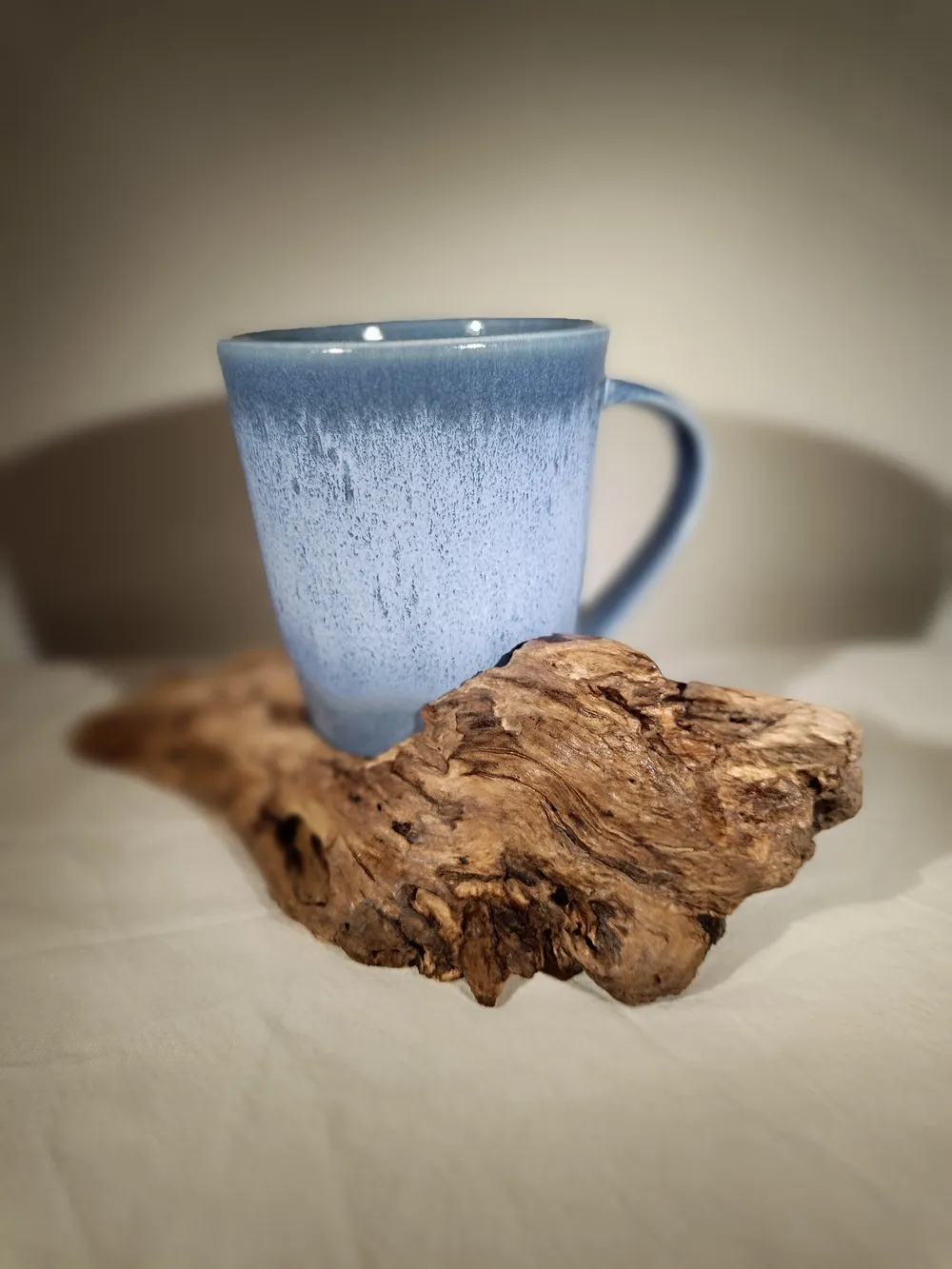 Cette création met en valeur une tasse en céramique délicatement enchâssée dans un morceau de bois flotté façonné par le temps. Le bois, aux formes sculpturales et aux reliefs marqués, semble enlacer la tasse et lui offrir un appui naturel. Le contraste entre la bleu doux de la céramique et les teintes chaudes, patinées du bois crée une composition à la fois sobre et expressive. Chaque pièce est unique, révélant les veines, les creux et les courbes laissés par l’eau et les éléments. Pensée pour le café ou le thé, cette création invite à ralentir et à savourer l’instant. Elle peut aussi s’exposer comme un objet décoratif à part entière. Une pièce authentique, entre force brute et douceur du quotidien.