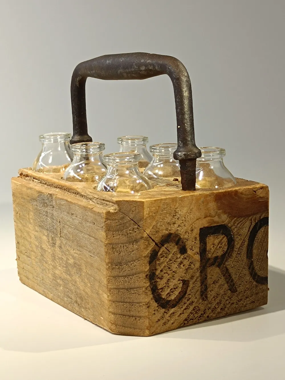 Cette création en bois massif revisité propose une composition chaleureuse, où l’authenticité du matériau occupe toute la scène. Le bloc de bois, marqué par le temps et les reliefs naturels de ses fibres, apporte une présence brute et rassurante. Sur sa surface, six petits pots en verre sont harmonieusement disposés, ajoutant transparence et légèreté à l’ensemble. Ces contenants offrent de multiples possibilités : accueillir de petites fleurs séchées, des éléments naturels, ou devenir de délicats vases individuels. L’anse en métal martelé renforce l’esthétique artisanale et donne à la pièce un caractère à la fois rustique et raffiné. Unique et chaleureuse, elle apporte une touche authentique à n’importe quel intérieur, du plus moderne au plus naturel.